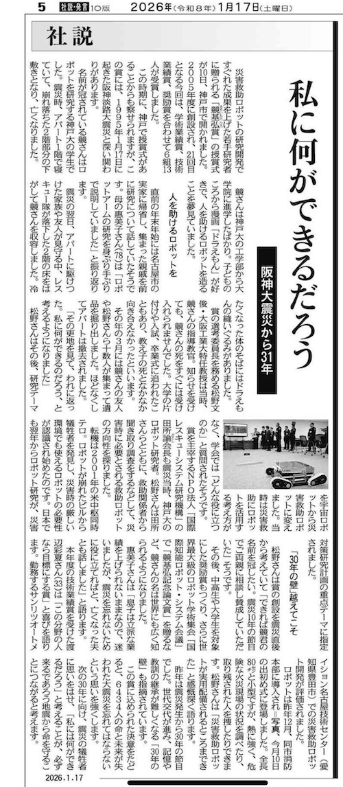 ▶︎ 2026年1月17日中日新聞朝刊 社説「私になにができるだろう」